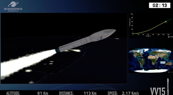 The fifteenth launch of a European Vega rocket ended in failure July 10, resulting in the loss of an imaging satellite for the United Arab Emirates. The Vega rocket, built by Italian manufacturer Avio, lifted off at 9:53 p.m. Eastern from Europe’s spaceport in Kourou, French Guiana on the northern coast of South America. Telemetry data indicated a deviation from the rocket’s intended course around its second minute of flight. The rocket left its intended course during its second-stage burn.
