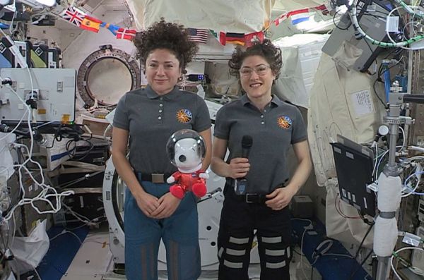 Snoopy, "the world famous astronaut," has reached new heights — above the streets of New York City and aboard the International Space Station. The Peanuts comic strip beagle took flight in real life on Thursday (Nov. 28), as a new, NASA-inspired giant balloon in the Macy's Thanksgiving Day Parade and as a plush doll floating aboard the orbiting laboratory. NASA crew members Jessica Meir and Christina Koch from on board the space station revealed the Astronaut Snoopy doll in a video shown as part of NBC's television coverage of the holiday celebration.
