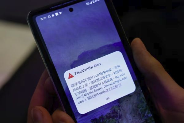 Taiwan's government issued an air raid alert on Tuesday, saying a Chinese rocket carrying a satellite had flown over its southern airspace, which Taiwan's foreign minister described as part of a pattern of harassment days before a pivotal election. The island-wide security alert was sent by the defence ministry to mobile phone users in Taiwan after 3 p.m. (0700 GMT), around the same time Chinese state media confirmed the launch of a science satellite.