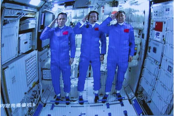 Three Chinese astronauts have begun making China's new space station their home for the next three months, after their launch and arrival at the station Thursday marked further advances in the country's ambitious space program. Their Shenzhou-12 craft connected with the station about six hours after taking off from the Jiuquan launch center on the edge of the Gobi Desert.