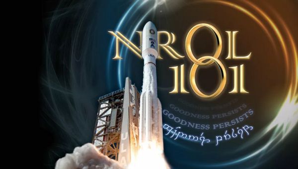 A United Launch Alliance Atlas V rocket is being prepped for a mission that will send a National Reconnaissance Office spy satellite into orbit from Florida's Cape Canaveral Air Force Station this Tuesday, which is Election Day in the United States. While information about NRO launches is always a little scarce for obvious reasons, this one looks to be relatively routine except for the baffling mission artwork that includes a phrase in ... Elvish?