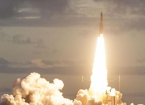 Ariane 5's first launch of 2020 has delivered two telecom satellites, Konnect and GSAT-30, into their planned transfer orbits. Arianespace announced liftoff at 21:05 GMT (22:05 CET, 18:05 local time) this evening from Europe's Spaceport in Kourou, French Guiana. Konnect, with a launch mass of 3619 kg, was the first to be released after about 27 minutes.