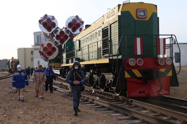 A Russian Soyuz-2.1a rocket rolled out to a launch pad Monday at the Baikonur Cosmodrome in Kazakhstan, ready for the first crewed flight to use the modernized Soyuz booster configuration. Liftoff with two Russian cosmonauts and a veteran NASA astronaut is scheduled Thursday on an expedition to the International Space Station. Preparations for crew and cargo launches to the space station are proceeding amid the global COVID-19 coronavirus pandemic.