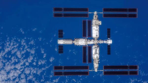 China’s Shenzhou-17 astronauts embarked on their first extravehicular activity Thursday to address minor damage to a Tiangong space station solar array. Mission commander Tang Hongbo and Tang Shengjie began a roughly 7.5-hour extravehicular activity (EVA), or spacewalk, Thursday. The pair reentered Tiangong through the Wentian science module’s EVA hatch at 8:35 a.m. Eastern (1335 UTC) Dec. 21, according to the China Manned Space Engineering Office (CMSEO).