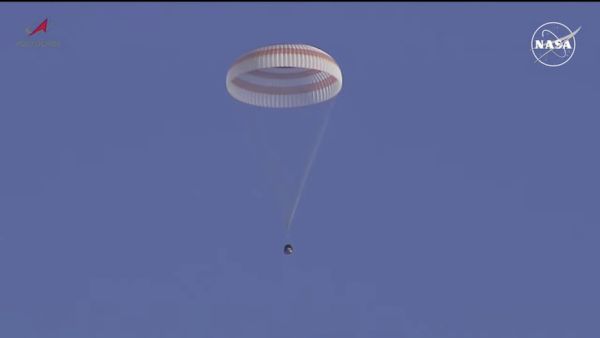 Soyuz brings two cosmonauts, NASA astronaut back to Earth after record-setting mission