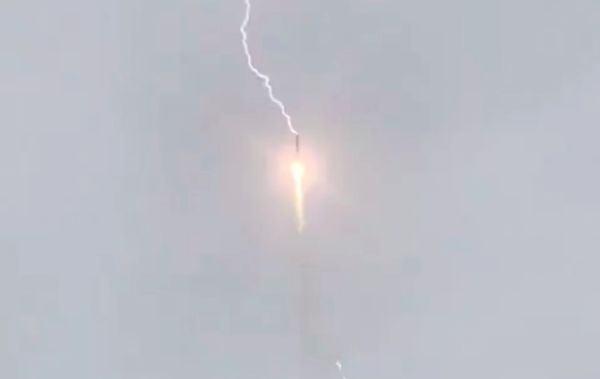 A Russian Soyuz rocket carrying a Glonass navigation satellite withstood a lightning strike seconds after liftoff Monday, and still delivered its payload to orbit. The Soyuz-2.1b rocket lifted off from the Plesetsk Cosmodrome in far northern Russia at 0623 GMT (2:23 a.m. EDT; 9:23 a.m. Moscow time) Monday, according to the Russian Defense Ministry. Seconds later, a bolt of lightning struck the kerosene-fueled launcher as it climbed away from Plesetsk, located in Russia’s Arkhangelsk region around 500 miles (800 kilometers) north of Moscow.