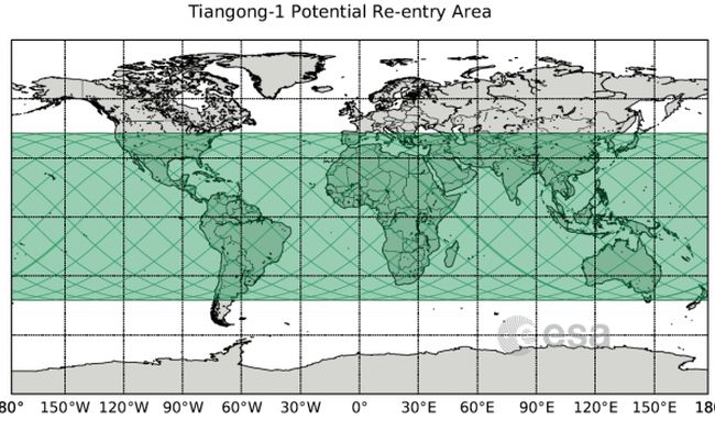 Thanks to the European Space Agency, we have a slightly better idea of where and when China's 8.5-ton falling space station will re-enter the atmosphere and crash into Earth. Although the agency clarifies that "at no time will a precise time/location prediction from ESA be possible" it provides a new estimated timeline and location Tiangong-1 will return to Earth. The ESA's timeline -- posted Thursday, March 15 -- puts the space station's return between March 30 and April 6, and between 43 degrees north and 43 degrees south.