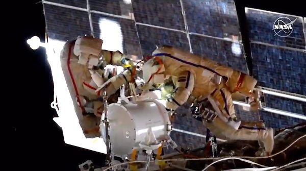 Two Russian cosmonauts used the International Space Station’s Poisk docking compartment as an airlock for the first time Wednesday in a six-hour 48-minute spacewalk to begin preparing the nearly identical Pirs module for removal next year. A new laboratory module will be parked in its place later. Expedition 64 commander Sergey Ryzhikov and Sergey Kud-Sverchkov began the year’s eighth spacewalk at 10:12 a.m. EST. The excursion, the first for both cosmonauts, came just two days after arrival of four astronauts aboard a SpaceX Crew Dragon commercial ferry ship.