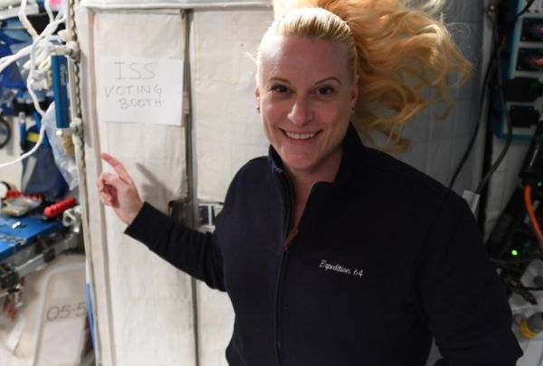 ASA astronaut Kate Rubins shared her voting selfie from orbit after stating before her launch earlier this month that she would cast her ballot from the International Space Station. Since 1997, as a concession to the fact that most NASA astronauts live near the agency's Johnson Space Center in Houston, Texas has had an extreme absentee ballot procedure in place for anyone who finds themselves off Earth on Election Day.