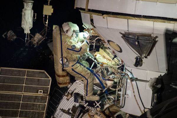 Watch two Russian cosmonauts take a spacewalk outside the International Space Station today